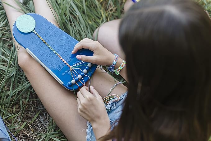 - High-Quality Materials & Patented Design: My Friendship Bracelet Maker’s clever design is built to last. Made with high-grade plastic, non-toxic and BPA-free. Includes 20 pre-cut, 100% cotton threads in 10 colors.