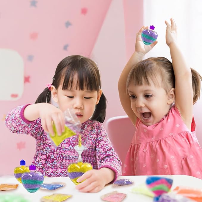 - A LOOK THEY’LL LOVE: The necklace cords come in 4 colors - red, blue, purple, and green. Once the heart-shaped bottles are filled with sand, these beauties will turn into eye-catching Valentine’s Day gifts for kids.
