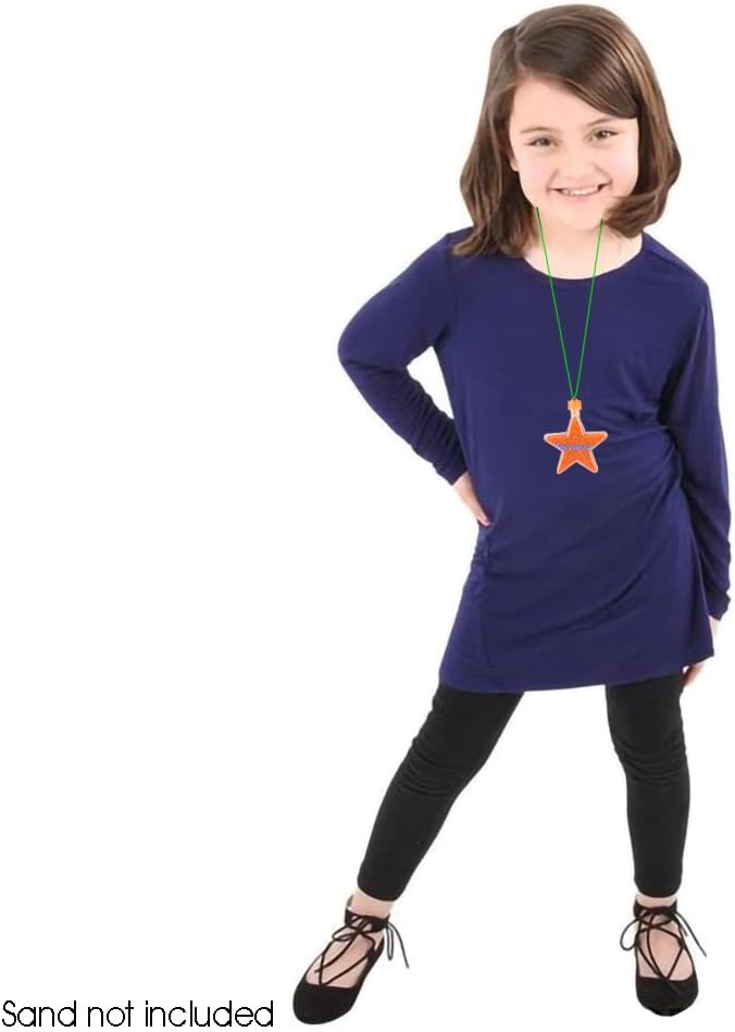 - QUALITY YOU’LL LOVE: Sand art necklaces designed with kids in mind. Durable, lightweight, and clear plastic. Each pack contains plastic sand bottles with colored screw on caps. Made with high-quality plastic, these star shaped sand bottles last through all the creativity.