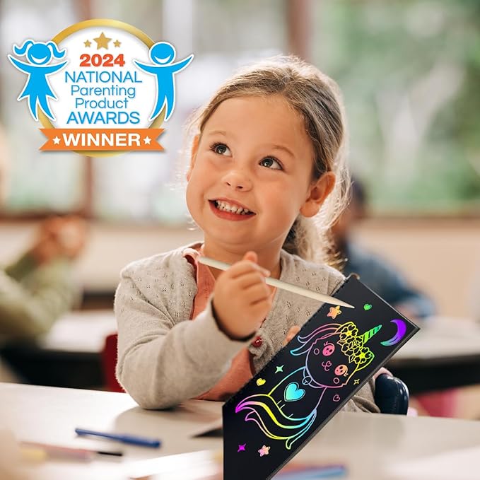 - 2.Safe & Fun Art Gifts for Kids: Our magic scratch off notebook is made of thick paper, no paint, non-toxic, non-polluting, and won't harmful for kid's; An ideal educational toy for girls & boys learning to draw. Perfect travel toys art activities gifts for 3 4 5 6 year old girls boys.