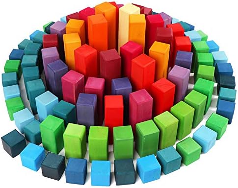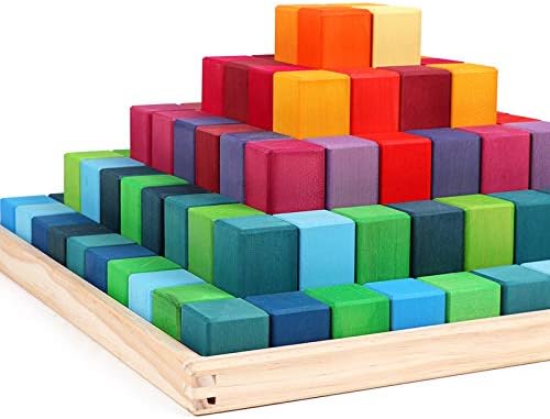 'Pyramid' Rainbow X-Large 100 Piece Blocks, Wooden Toys for Kids, Geometric Stacking Educational Building Blocks