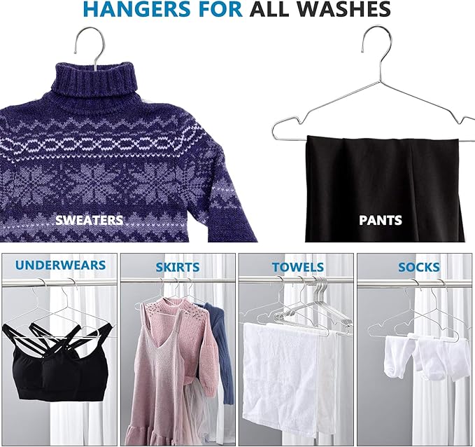 - ★Material: The wire hangers are made of durable and 100% stainless steel. Not like velvet hangers, wooden hangers or plastic hangers, this metal hangers can be waterproof that can be used for any places, such as bedroom,closet,bathroom,cloakroom and laundry room and more.