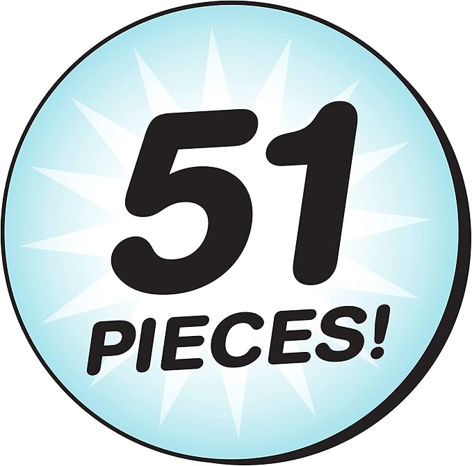 - 51- piece set includes 21 preprinted and precut Shrinky Dinks, 8 color pencils, 8 stands, 6 pipe cleaners, 2 key chains, 6 magnets, and instructions.