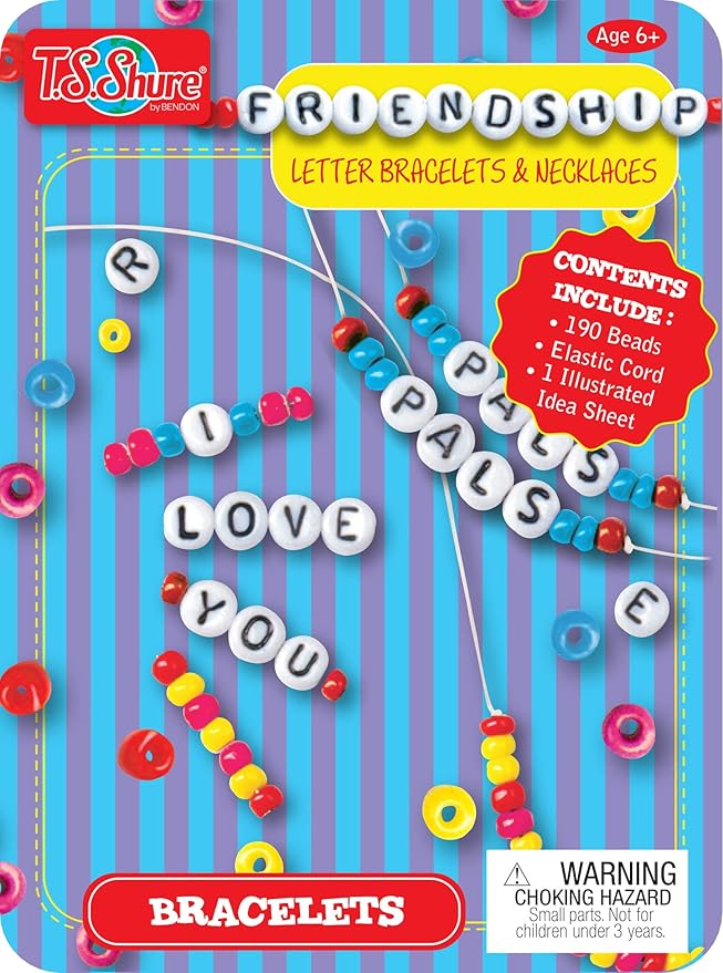 Bendon TS Shure Friendship Bracelet Mini Craft Activity Tin with 190 Beads and Elastic Cord 51243