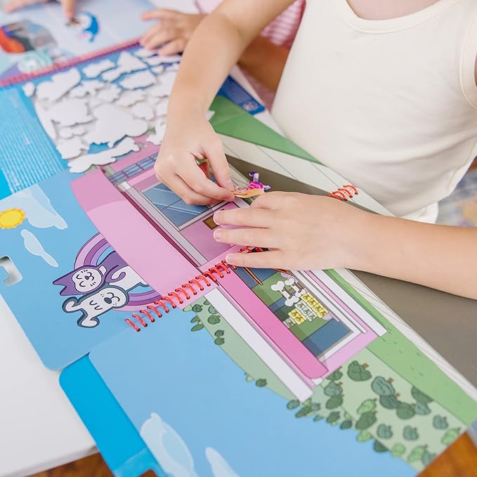 - Compact, spiral-bound format and built-in sticker storage makes them a great travel activity that encourages fine motor skills, creative expression, narrative thinking, and independent play