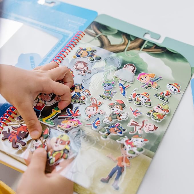 - Tell countless stories by filling scenes again and again in three pads (Adventure Bay, Jake’s Mountain, Jungle) to with PAW Patrol Restickable Puffy Stickers