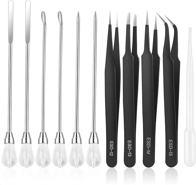 - [11 Pcs Resin Tools]: This resin tool kit includes 2 pcs stirring bar, 2 pcs muddler poke needles, 2 pcs resin spoons, 4 pcs resin tweezers and 1 pc transfer pipette. The resin craft tools set is totally enough for your daily needs and use. They will be your practical assistants in DIY resin art.