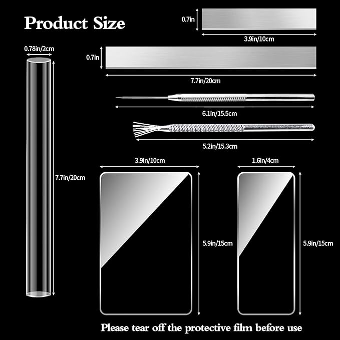 - 4 Acrylic Sheet: 2 size of the rectangular transparent acrylic sheets have a protective cover, please tear off the kraft paper before use.