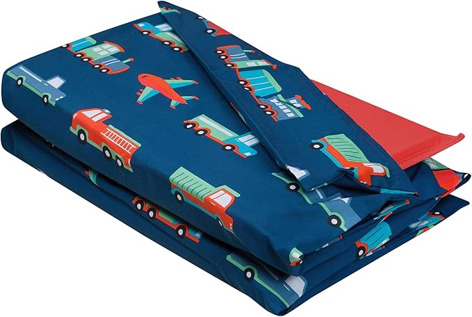 Wildkin Kids Nap Mat Cover for Boys & Girls, Sewn-in Flap Design Rest Mat Cover, Perfect for Preschool and Daycare, Fits Our Vinyl Nap Mat up to 1.5 Inches Including Basic Sleep Mat (Transportation)