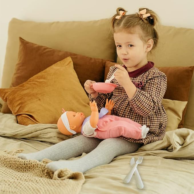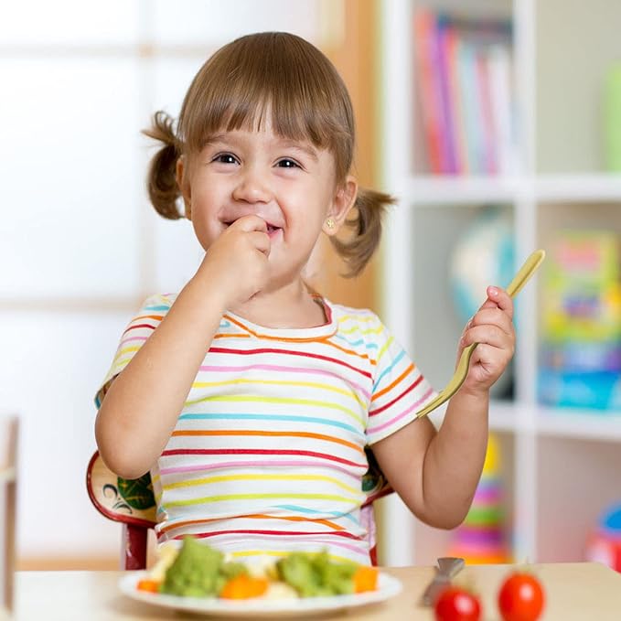 • Children's Full Dinnerware Set - Our kid’s dinnerware set is designed to provide parents with a complete dinner and snack set that meets all their children's needs. This 18-piece kids' plastic dinner set includes 6 toddler knives, 6 toddler forks, and 6 toddler spoons, making it ideal for children at various stages of development, from kids silverware set for the first stage (4 months) to baby utensils (6-12 months) to toddler spoons and forks (1-3 years old), and even for adults.