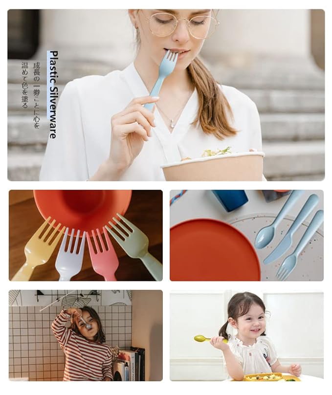 • Colorful & Reusable - Our plastic toddler spoons forks knife set come in six different bright colors for each dinnerware set. These utensils are durable and break-resistant, making them great for kids' lunch box, entrees, salads, soups, desserts, and cakes.