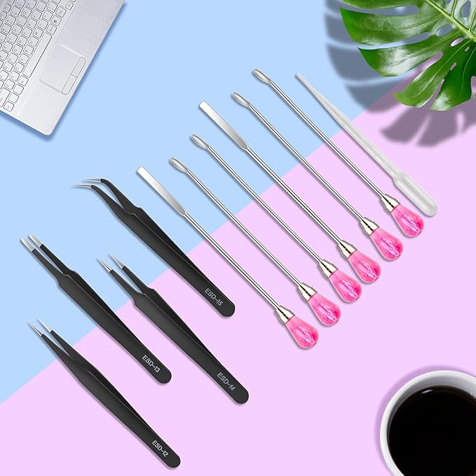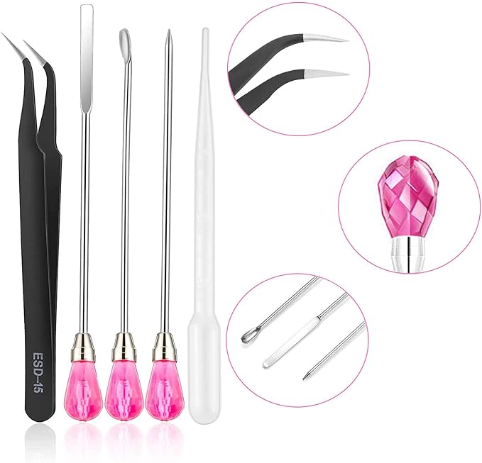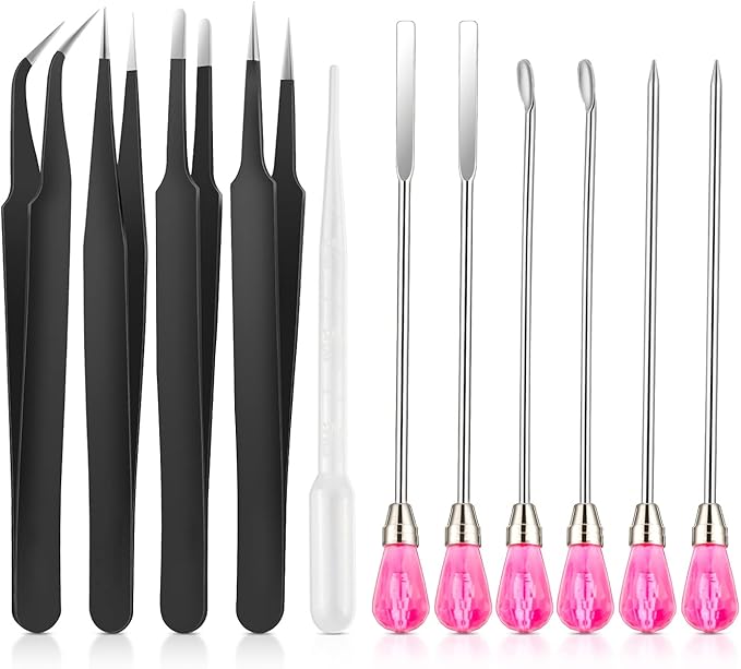 - 【11 Pcs Resin Tool Kit】: The resin tool set includes 2 pcs stirring bar, 2 pcs muddler poke needles, 2 pcs resin spoons, 4 pcs resin tweezers and 1 pc transfer pipette. The resin tool kit set is totally enough for your daily needs and use. They will be your practical assistants in DIY resin art.
