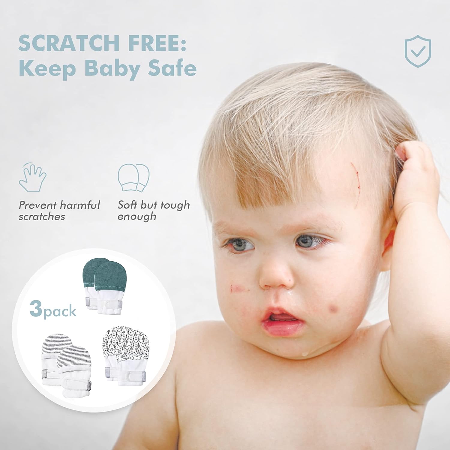 • [No Scratch: Keep Baby Safe]: These Anti Scratch Baby Mittens are designed to prevent harmful scratches & thumb sucking, also a big help with things such as Eczema, Dry Itchy Skin, Pulling hair, NG Feeding Tube and Squeezing during Breastfeeding