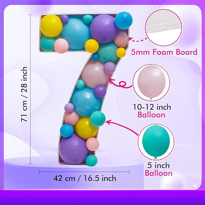 - DURABLE DELIGHT: JoyBox Design takes pride in using firm and thick foam board for our giant number balloon filling box, ensuring a robust structure that withstands the test of time. No compromises on quality - experience the joy of a sturdy, long-lasting 28-inch large balloon mosaic number for your special day.