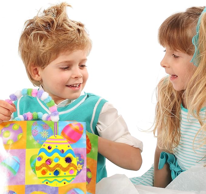 - 24 Sets Easter Egg Ornaments Decorations DIY Foam Easter Egg Craft Kits, including 24 pcs Easter egg shaped foam ornaments with holes at the top in 8 Easter colors, 228 pcs assorted self-adhesive Easter cutouts foam stickers in 6 colors, 150 pcs craft pom-poms in 8 colors, 1 sheet artificial rhinestone stickers, 24 pcs satin cords in Easter colors, 1 pc scissor, 200 pcs adhesive dots. This Easter craft kit lets kids create their own fun designs on these adorable Easter egg cutouts creatively.