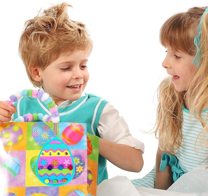 - 24 Sets Easter Egg Ornaments Decorations DIY Foam Easter Craft Kits, including 24 pcs Easter egg shaped foam ornaments and 24 pcs self-adhesive foam Easter egg cutouts in 8 Easter colors, 228 pcs assorted self-adhesive Easter foam stickers in 6 colors, 150 pcs pom-poms in 8 colors, 1 sheet artificial rhinestone stickers, 24 pcs satin cords, 1 pc scissor, and 200 pcs adhesive dots. Kids can creatively decorate their Easter egg with this simple Easter craft kit.