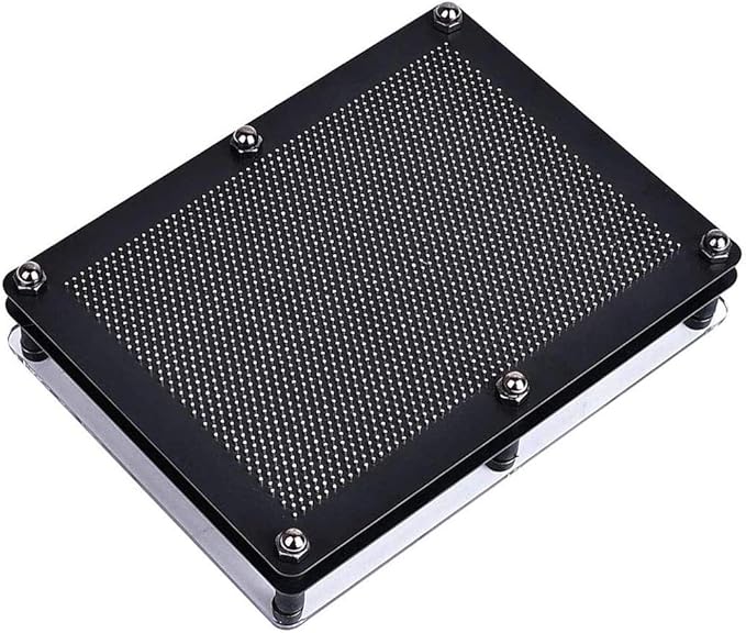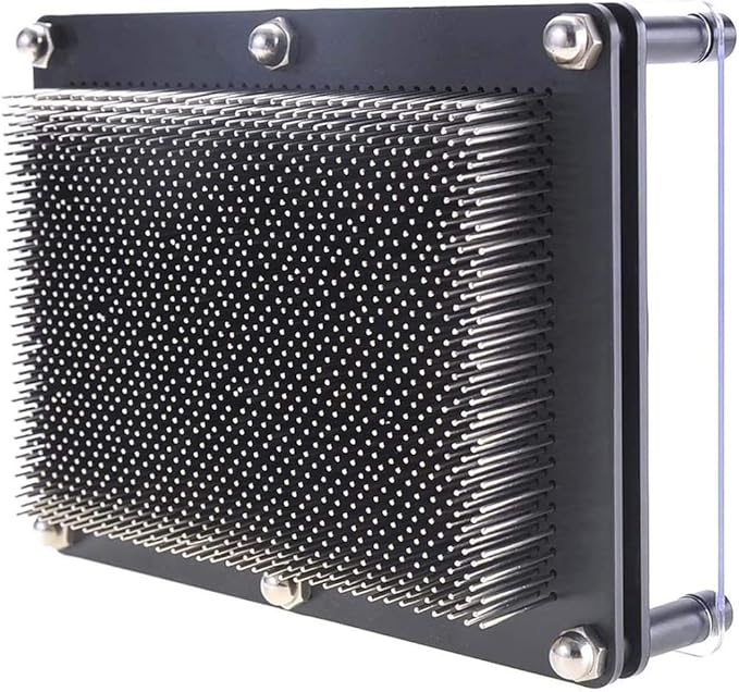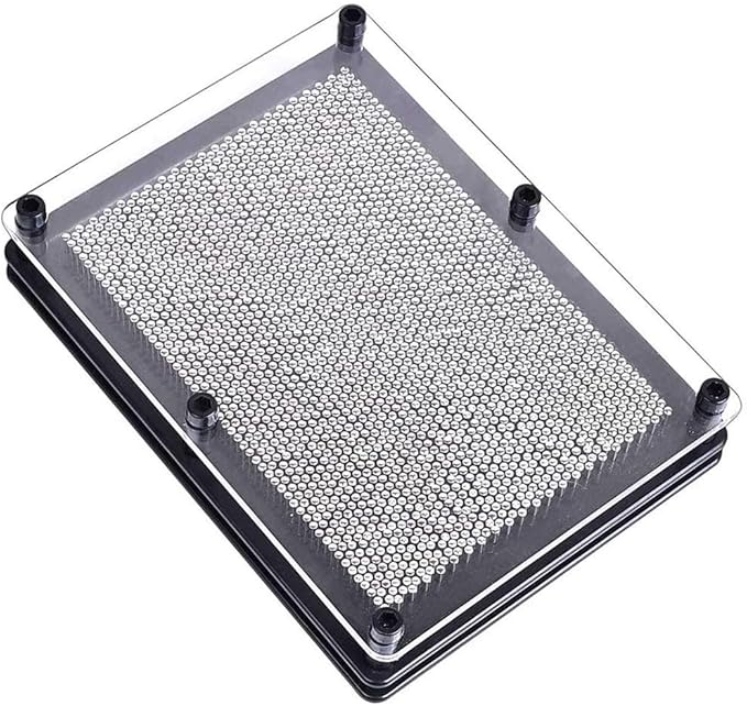 - 【Safe and Sturdy】Unique metal 3d pin art board.Metal pins with a sturdy black plastic frame.Uses hundreds of moveable metal pins to create 3D images.The metal pins are mounted in a sturdy plastic frame. It will not hurt your skin, safe for both kids and adults.