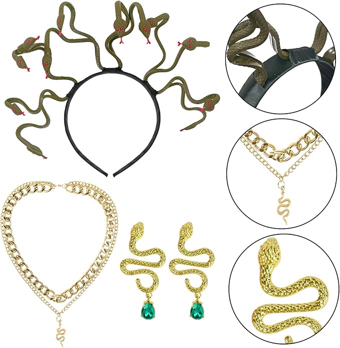- Proper Size: our Medusas headband is approx. 23*23cm, vivid and attractive, fit for most adults. It wont tear or tighten your hair, a nice medusa halloween costume!