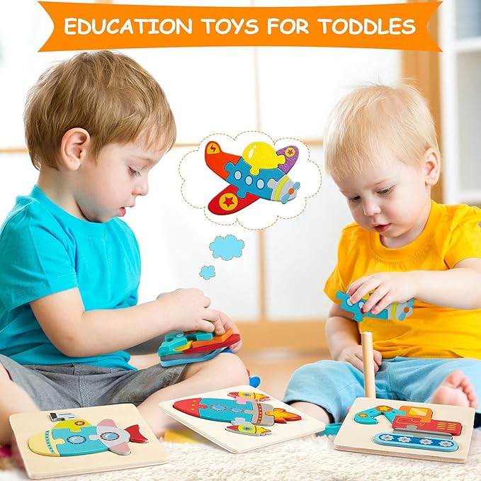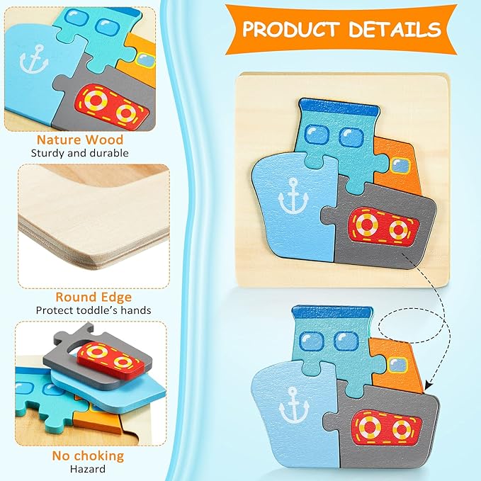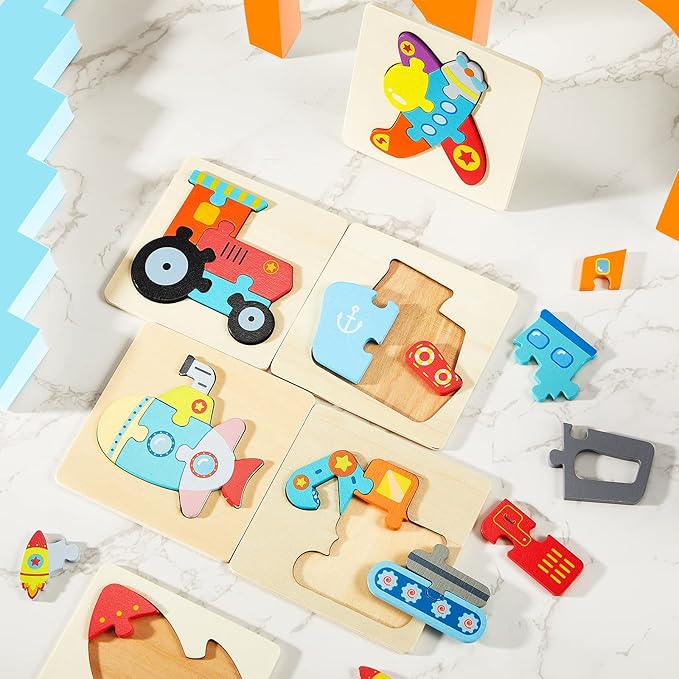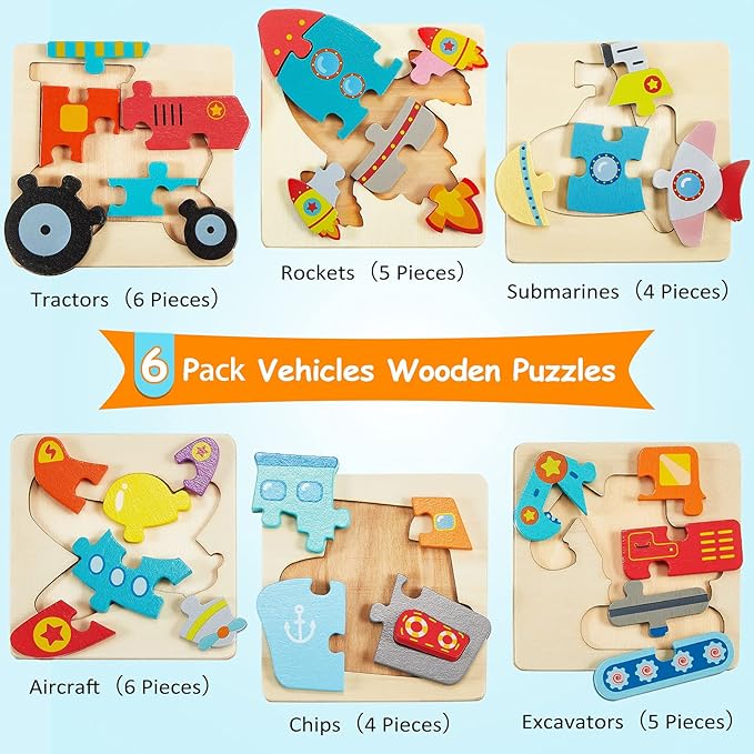 - Wooden vehicle puzzle kit: you will receive 6 pieces of vehicles baby wooden puzzles in different patterns, including aircraft, ship, excavator, submarine, rocket, tractor, which can meet boys and girls' different preferences and the quantity is sufficient for them to share with friends to play together