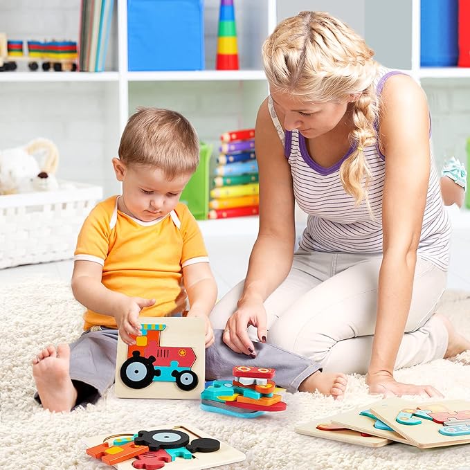 - Eye-catching colors and patterns: these baby educational puzzles have beautiful bright vibrant colors and cute shapes, which can enhance boys and girls' capacities of learning colors and recognizing items, stimulating brain development, cultivating patience, imagination and concentration