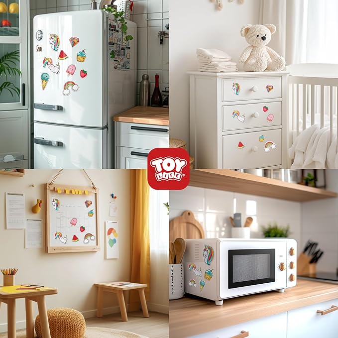 - EASY DIAMOND ART FOR KIDS: Each of these 12 magnets features a unique design, including four cute fruits and desserts, a heart, a unicorn, a rainbow, and a baby unicorn. There’s enough to keep one-person busy bedazzling - and enough to share with friends, too.