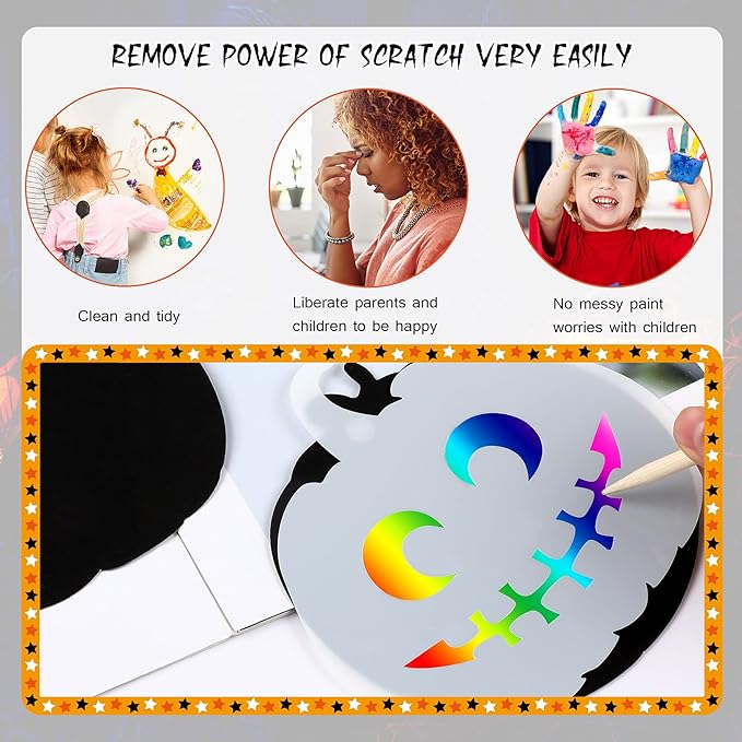 - Halloween Party Favors: The magic rainbow scratch paper art is suitable for Halloween treats bags, party favor bag of tricks, Halloween party favor, Halloween party games, Halloween gifts, Halloween party supply, haunted Halloween parties, trick-or-treating, Halloween arts and crafts, Halloween party favors, Halloween event party supplies, classroom prizes, and all other uses.