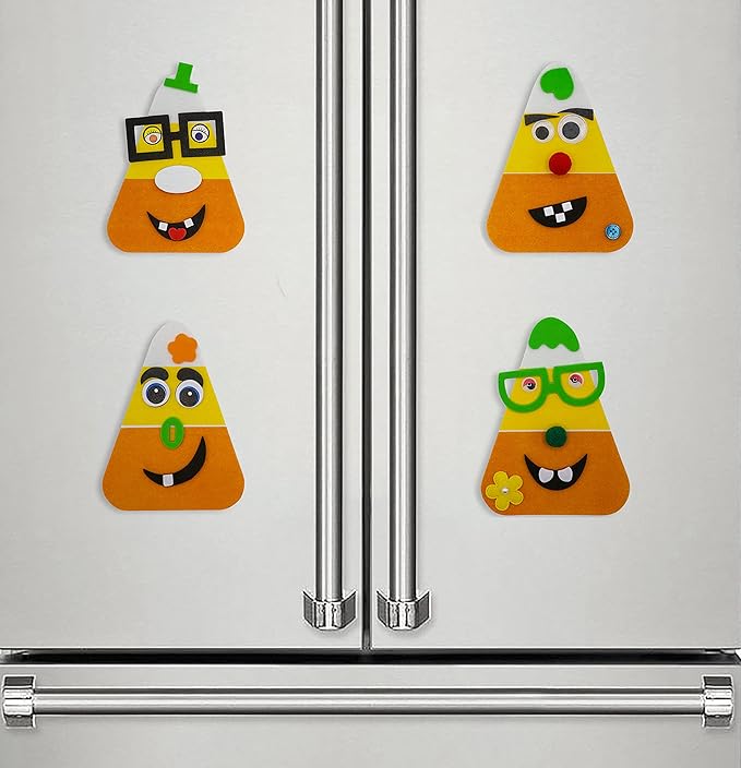 - MAKES 12 - Comes in 4 Goofy Designs, you get 3 of each. with our Halloween crafts bulk Kids can make silly faces on the candy corn magnets by using the included pieces. It makes a fun party activity at your Halloween party