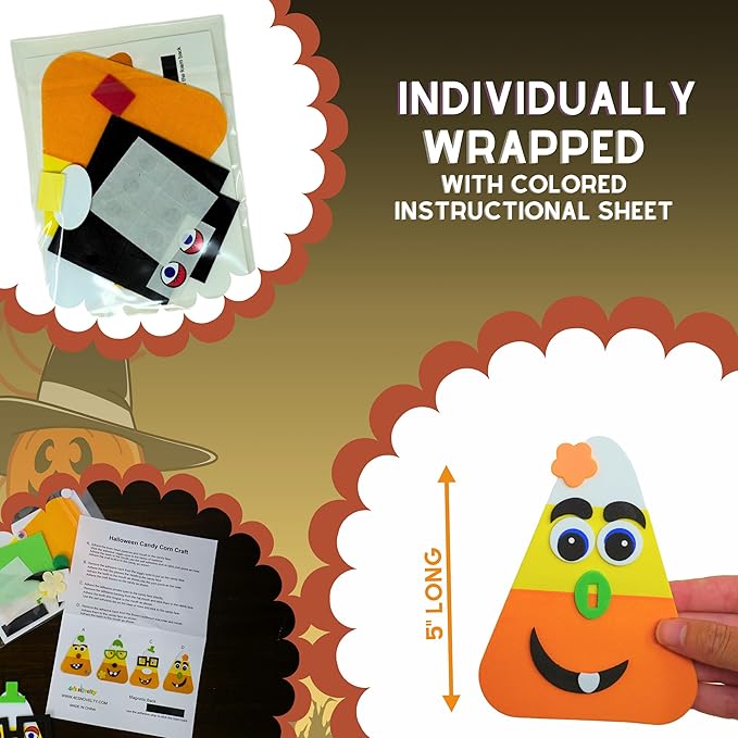 - CANDY CORN CRAFTS - Our Foam Halloween Crafts for kids contain everything you need. Plus helpful instruction sheet.