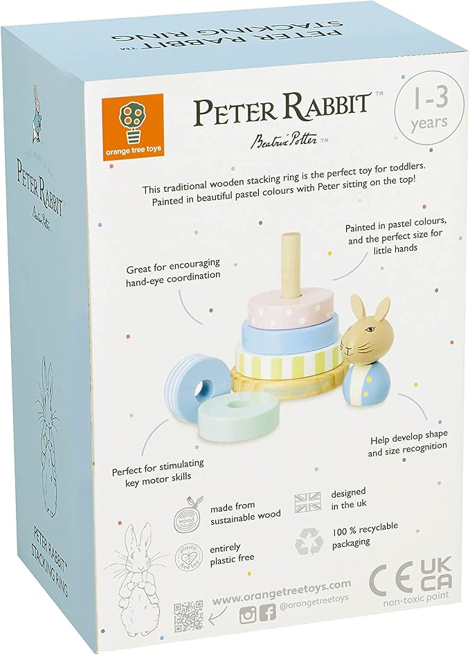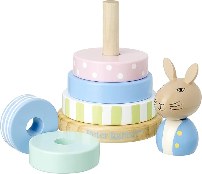 - This traditional wooden stacking ring is the perfect toy for toddlers. Painted in beautiful pastel colors and patterns, with Peter sitting on the top!