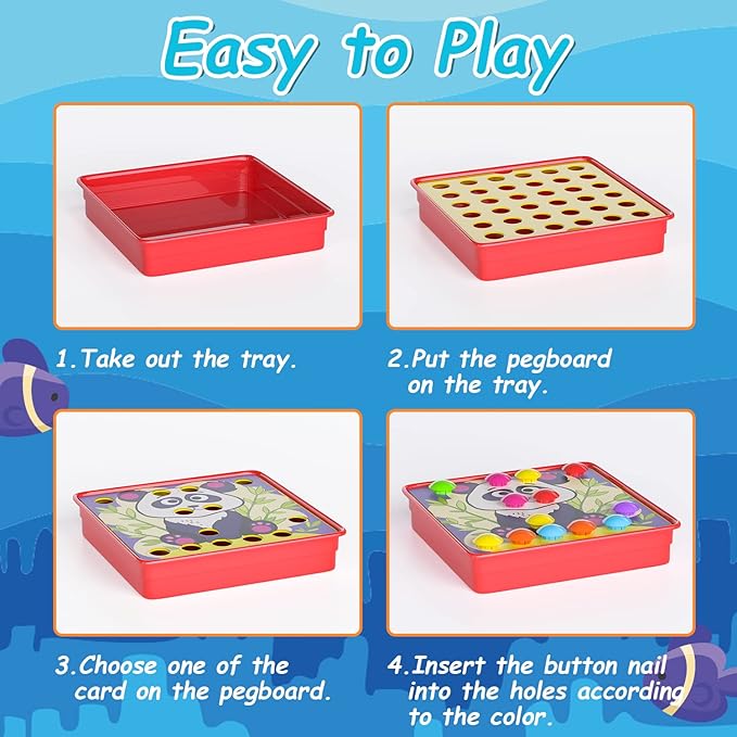 - Creative Fun Toys: Start by matching and snapping the mushroom nails to the illustrated pattern cards to complete the picture, then move on to creating own unique designs by only using the mosaic pegboard! Let your kids have imagination time