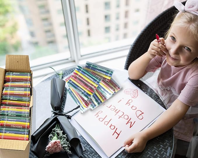 Madisi Crayons Bulk Pack, Regular Size, 4 Colors, 150 Packs, 600 Count