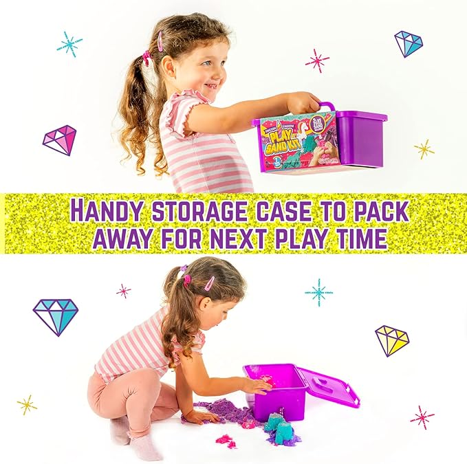 - Color Burst: Unleash creativity with our rainbow moldable kinetic sand kit for girls in a sensory bin with lid. Perfect for family fun, it features vibrant sands and a reusable box for crafty kids. Perfect gifts for girls' birthdays