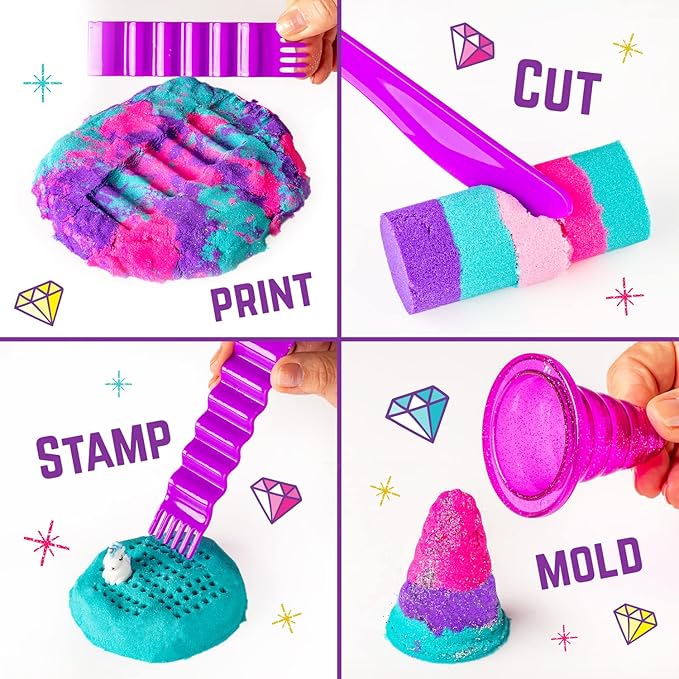 - All-inclusive Set: This kinetic sand kit features super-fun unicorn sand in shades like pink, magenta, turquoise, and purple. This kit includes 7 play tools, promising creative possibilities