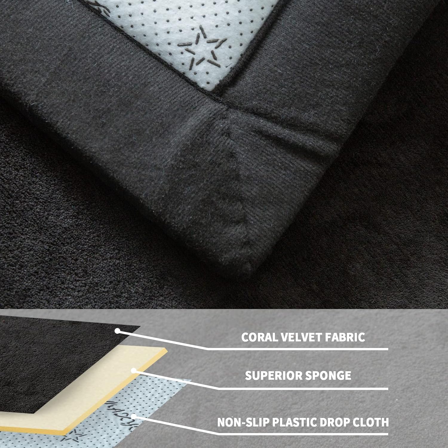 - Extra Thick Carpet: The filling adopts superior sponge with a thickness of 1.18 inch(3cm). Size: 78 by 158 inch. Large size has enough space for family activities. Solid black floor carpet is also suitable for home decor, living room rugs, area rugs, bedroom mat etc.