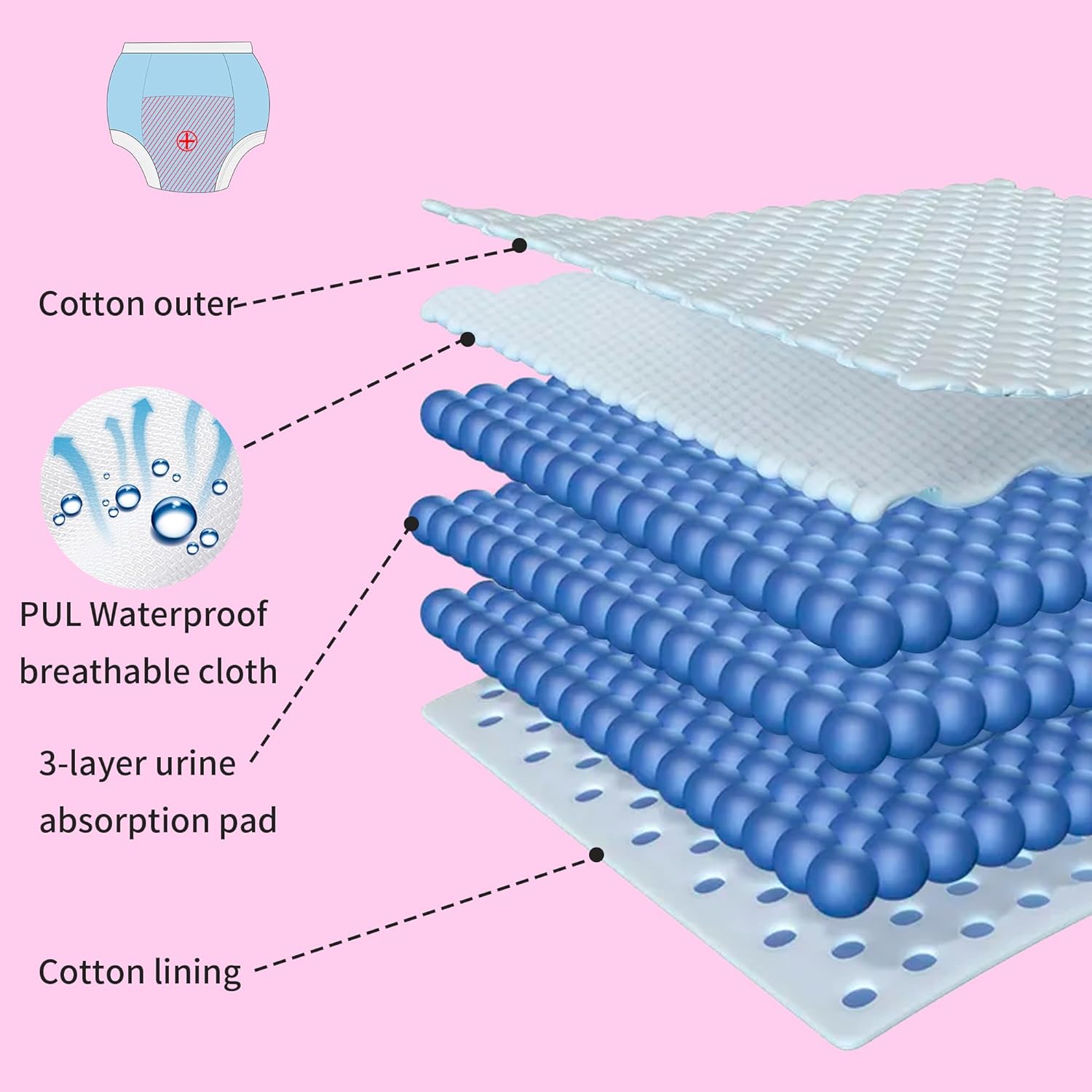 - 【Machine-Washable 10-Pack】Includes 10 pairs so you’re always ready for successful toilet training. For maximum absorbency, wash once before first use. After that, simply machine-wash in water up to 40 °C (no chlorine bleach) and tumble-dry on low.