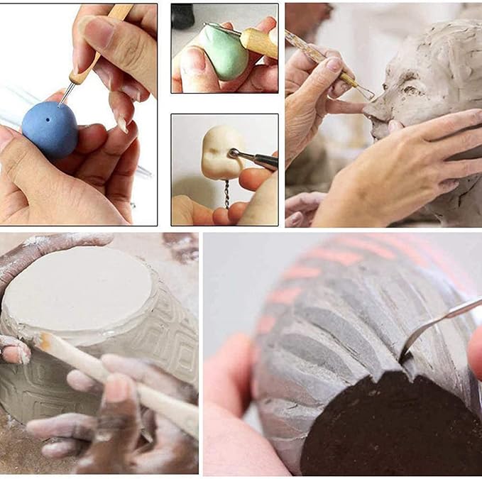 - Feature:This is a very complete set of clay tools, perfect for carving, modeling, cutting, scrapping, chipping, brushing, smoothing and more.