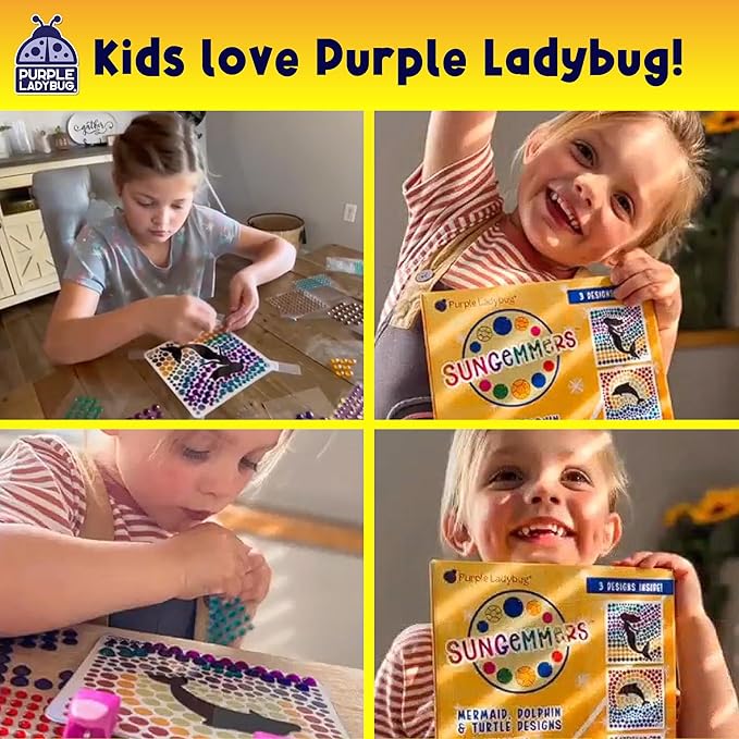 - MESS-FREE SUNCATCHER KIT FOR KIDS! No need to worry about clean-up—these easy-to-create gem art kits keep kids entertained while making dazzling window art. Spark your child's imagination with Purple Ladybug's SunGemmers! Ideal for kids ages 6 & up!