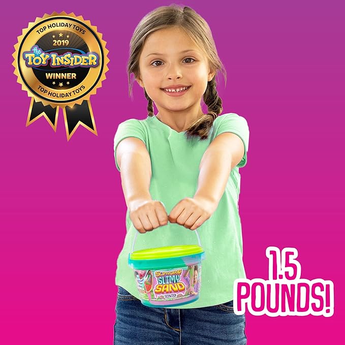 - INCLUDES: 1 Bucket of Pink & Neon Green Watermelon-Scented SLIMYGLOOP Slimy Sand (1.5 lbs.) 4.72 in. x 4.72 in. x 3.54 in. With Handle