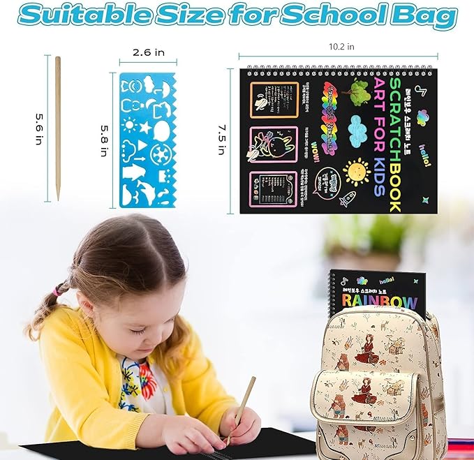 - 🌈Cultivate Child's Imagination & Creativity: Kids can use to take notes, etch doodles, and create cool illustrations and designs. It can even be used for DIY, cut out your own work to decorate the room. Our scratch art book easily record kid's thoughts, and it's a good way to train their practical and intellectual skills.