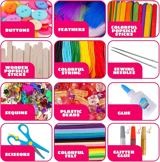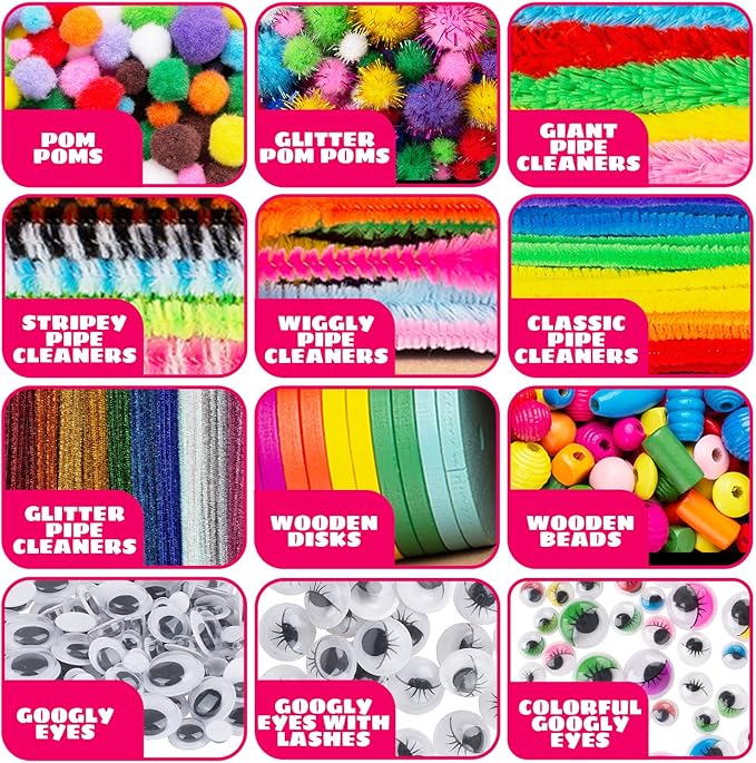 - 🌈 𝗦𝗣𝗔𝗥𝗞 𝗬𝗢𝗨𝗥 𝗞𝗜𝗗'𝗦 𝗖𝗥𝗘𝗔𝗧𝗜𝗩𝗜𝗧𝗬: With over 3000 pieces of craft supplies, this kit is the ideal present to spark your kids’ imagination & creativity with unlimited possibilities for different crafting projects, encouraging developmental skills through arts and crafts and enhancing fine motor skills, hand-eye coordination, and creative problem-solving. For more inspiration, just scan the QR code on the back of the box for handy tips, tutorials, & crafting ideas!