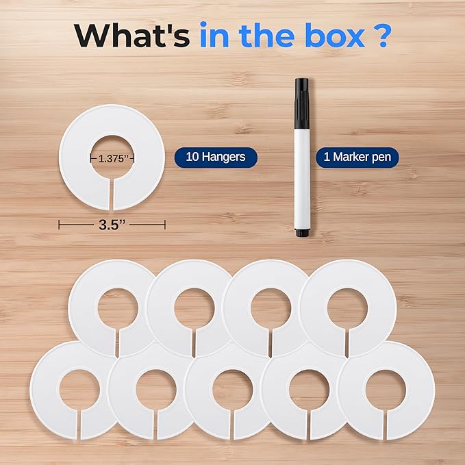 - READY TO USE: With our 10 Pieces White Plastic Round Hangers Clothing comes includes a Non-Washable Marker Pen and Black Marker Pen so you can get started on your closet storage system and become organized right away