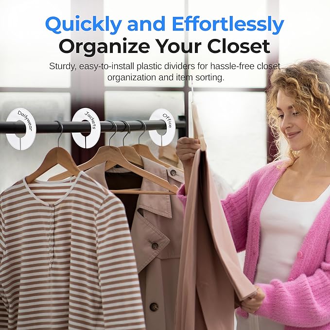 - ROUND WHITE HANGERS: Maintain uniformity in your wardrobe by using our White Plastic Round Hangers dividers while sorting and organizing inside your closet, we guarantee that you will enjoy a clean and attractive wardrobe
