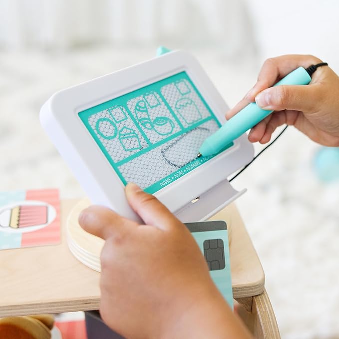 - Baking accessories include a wooden baking tray, baking pan, ingredient bag, squishy icing tube, foldable cupcake box, and removable cake stand; add to the pretend play experience with wooden sign magnets, a reusable, double-sided menu, credit card, and reusable loyalty card