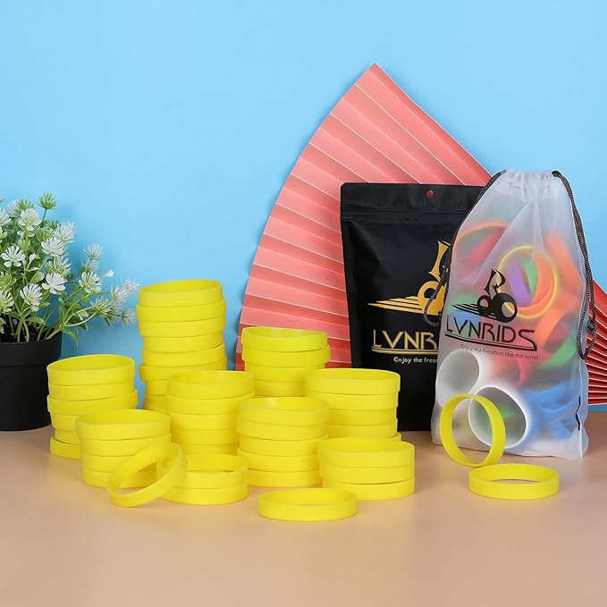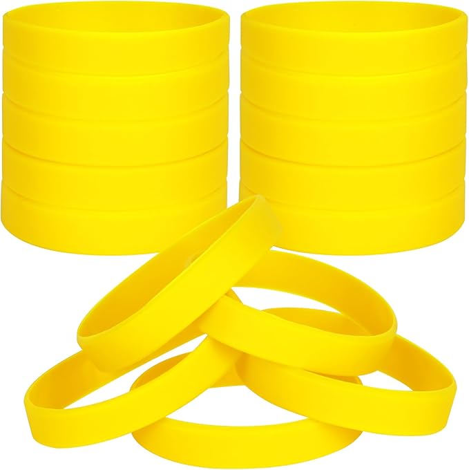 100 PCS Silicone Bracelets Wristbands for kid, Sports Rubber Elastic Wristband Bracelet for Party Decorations Favors Set Pack Yellow