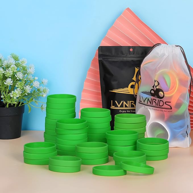 100 PCS Silicone Bracelets Wristbands for kid, Sports Rubber Elastic Wristband Bracelet for Party Decorations Favors Set Pack Green