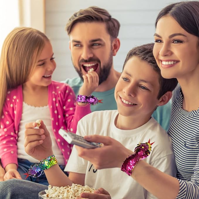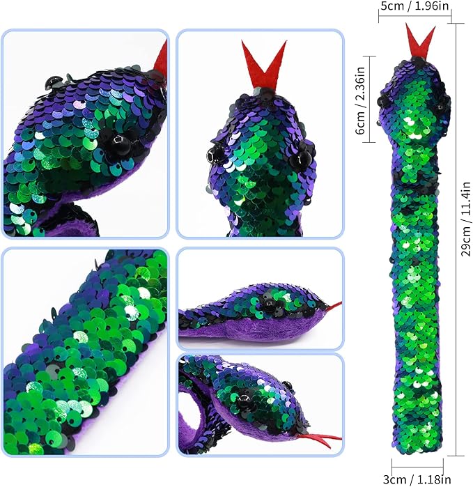 6 Pieces Slap Bracelet Snake Snap Bracelet Sequin Wristband for Kids Birthday Party Favors Supplies Halloween Stuff Gifts