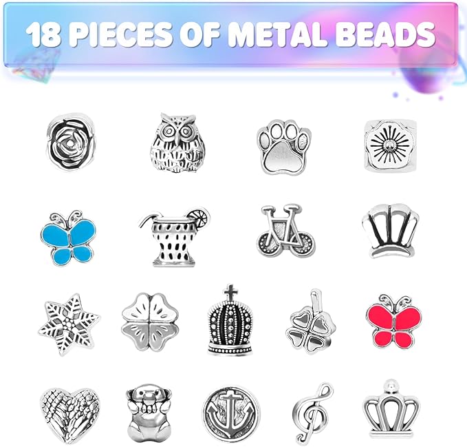 - Bracelet Making Kit: BIIB bracelet making kit comes with 2 snake chains, 2 bracelets, 18 metal beads, 24 colorful crystal beads, 23 different pendants, and 3 necklace cords. Perfect for girls' DIY bracelet making, helping them stimulate their creativity