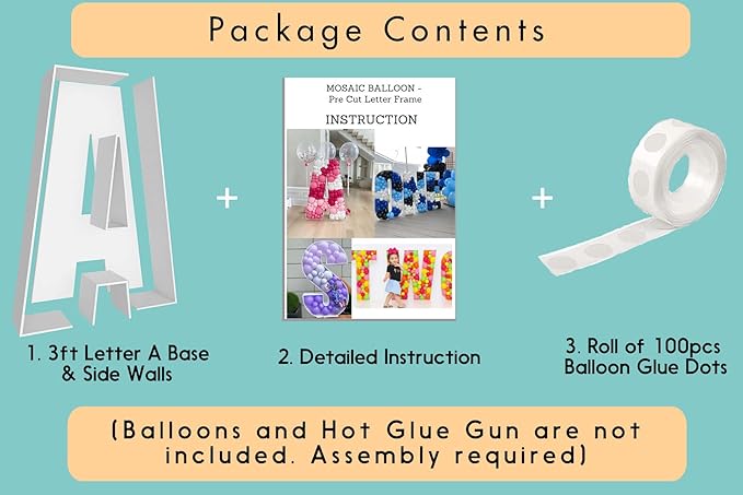 - FAST and EASY ASSEMBLY - Decorate your party like an event balloon artist! Our 3ft mosaic balloon letters are pre-cut to the perfect measurements, saving you the hassle of printing, measuring, and cutting templates yourself!