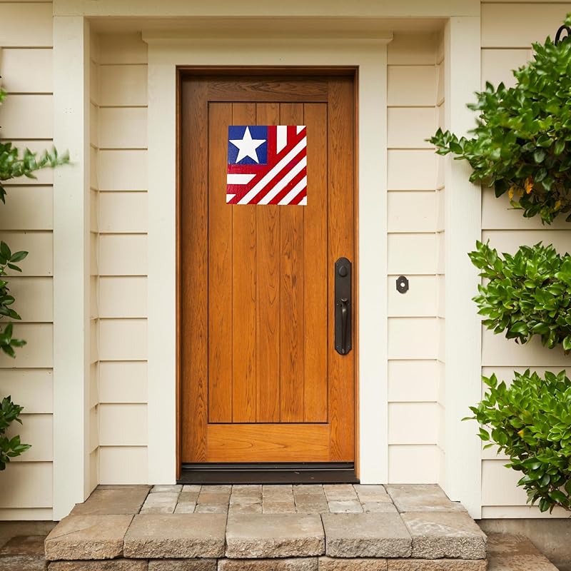 4th of July Unfinished Barn Quilt Square Wooden Sign, Country Decor Canvas Quilts Blocks (21 inches, Flag)