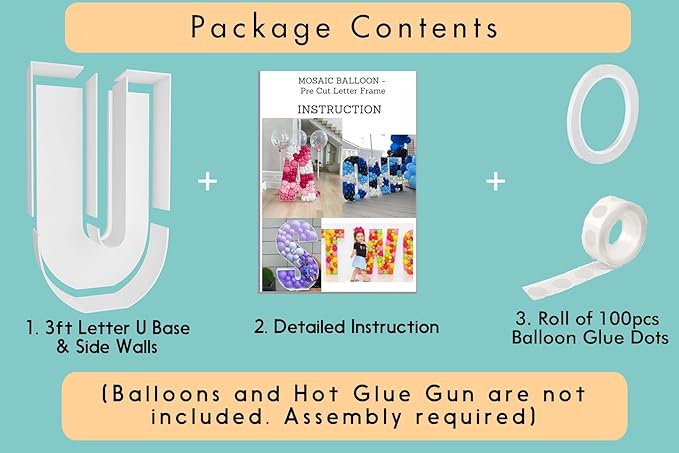 - FAST and EASY ASSEMBLY - Decorate your party like an event balloon artist! Our 3ft mosaic balloon letters are pre-cut to the perfect measurements, saving you the hassle of printing, measuring, and cutting templates yourself!